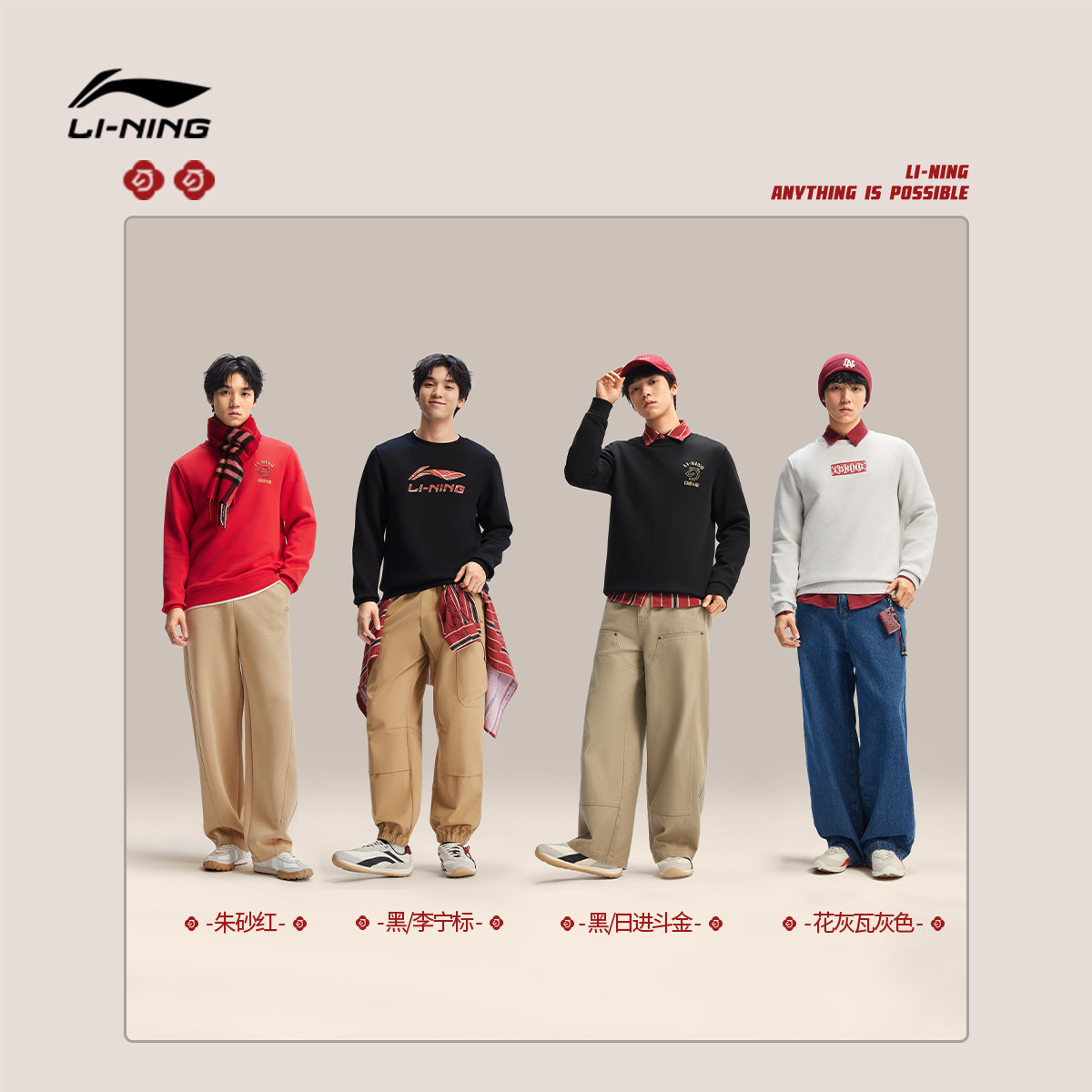 肖战同款李宁日进斗金丨卫衣男女新年马年长袖红色上衣春季运动服