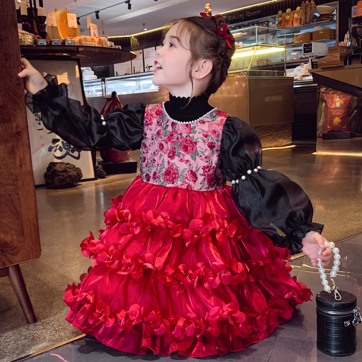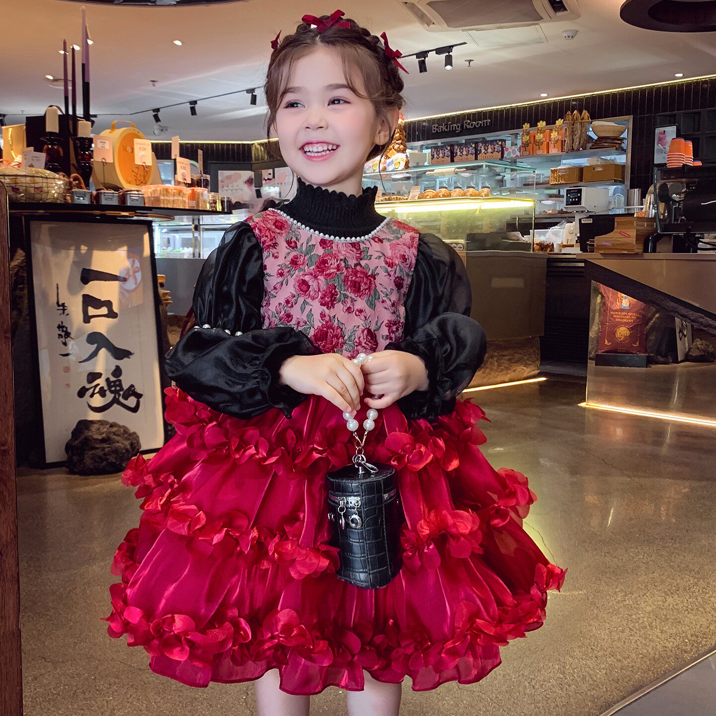 女童加绒公主裙冬2025新款儿童韩版碎花网纱蓬蓬公主裙女孩背心裙