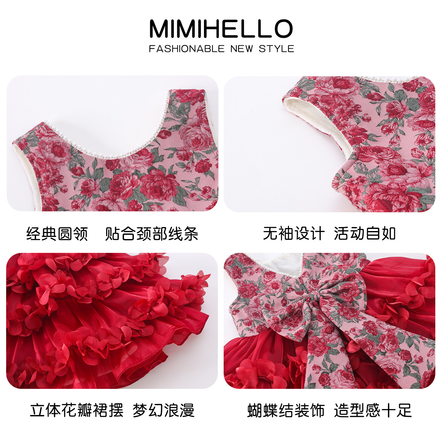 女童碎花网纱蓬蓬加绒背心裙