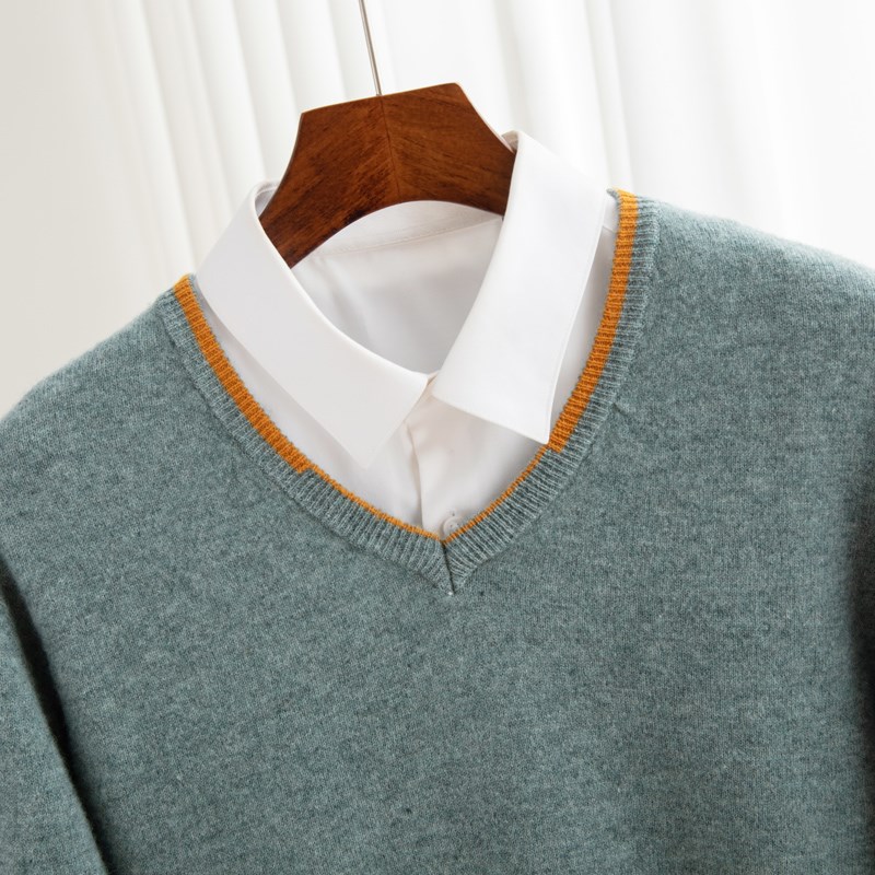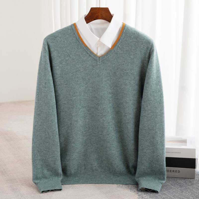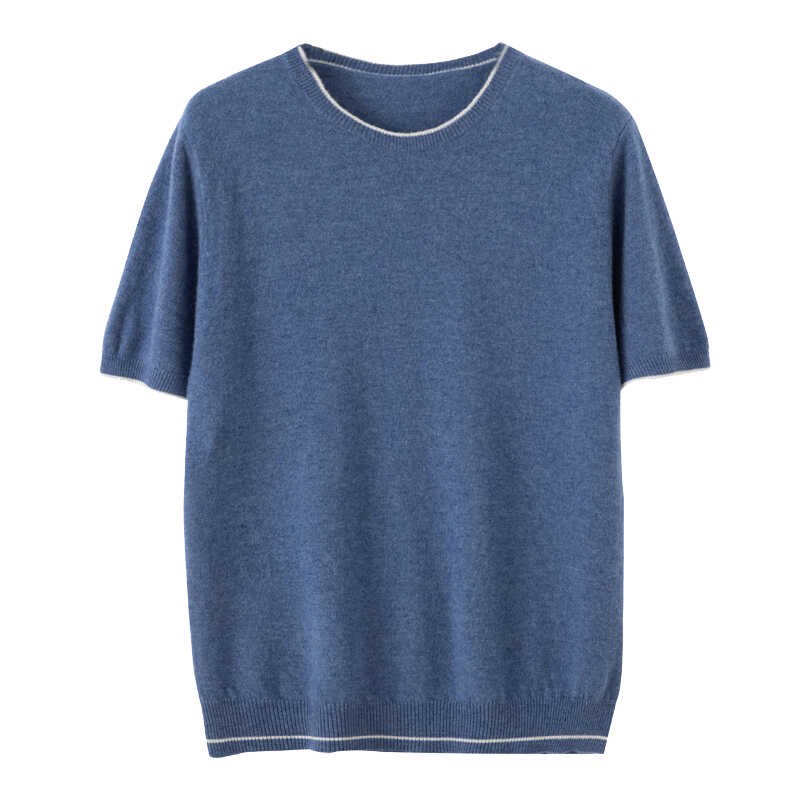 春秋新款100纯羊毛衫短袖圆领拼色毛衣男宽松T恤针织羊绒长袖打底