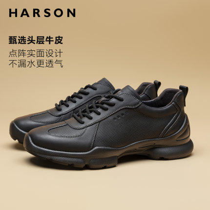 哈森男鞋新款透气商务休闲皮鞋男士真皮运动鞋黑色公务通勤休闲鞋