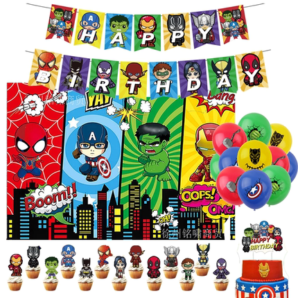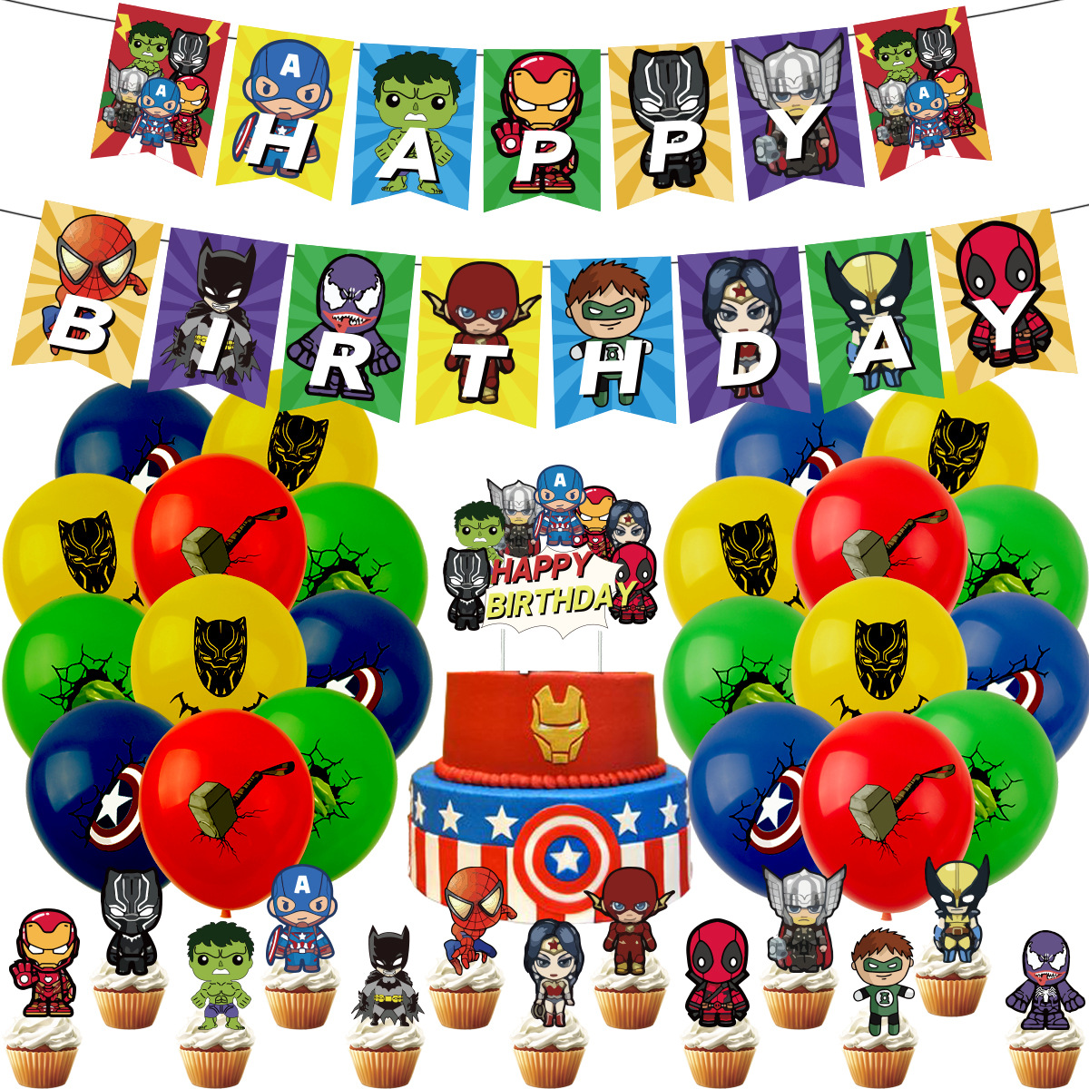 漫威主题生日派对装饰复仇者超级英雄拉旗蛋糕插排气球背景布置品