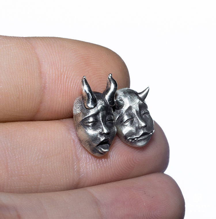 暗黑哥特风不对称恶魔婴儿耳钉耳环 潮酷金属男女小众学生情侣耳