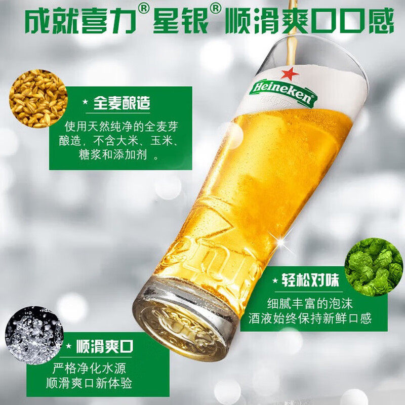 喜力星银啤酒500ml罐装6听拉罐黄啤全麦酿造顺滑爽口节日送礼