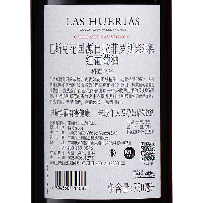拉菲巴斯克花园赤霞珠红酒礼盒装
