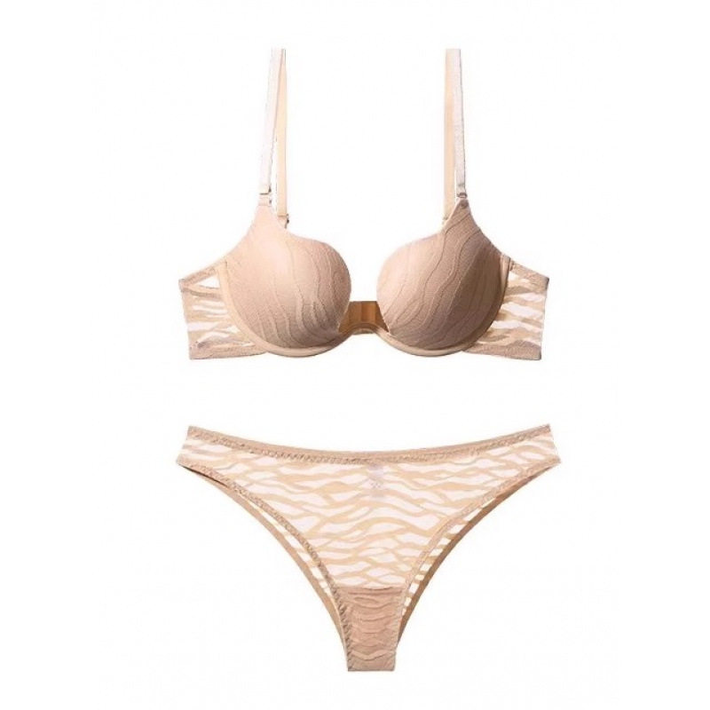 法式薄款内衣女性感蕾丝聚拢小胸显大无痕美背情趣文胸U型深V胸罩
