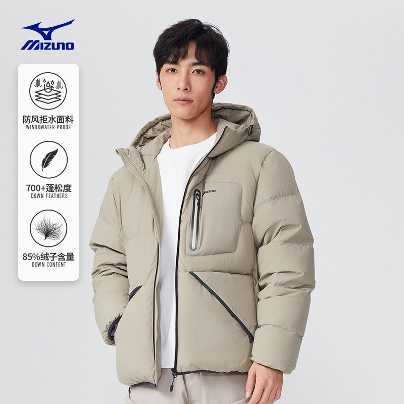 Mizuno美津浓新款男子纯色大插袋加厚保暖防水连帽羽绒服MIGRANT