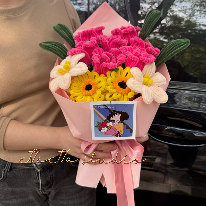广志送美伢的花束扭扭棒浪漫玫瑰成品毕业闺蜜生日创意礼物送女友