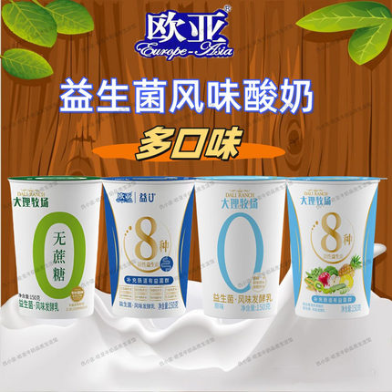 欧亚大理牧场活性益生菌/无蔗糖酸奶清真 酸奶150g*6杯*2板
