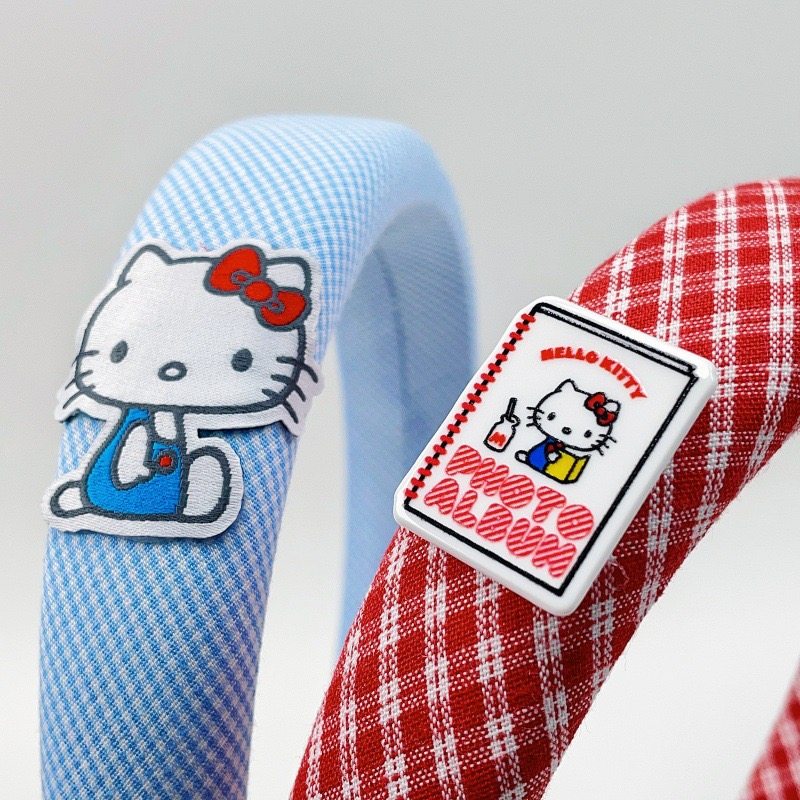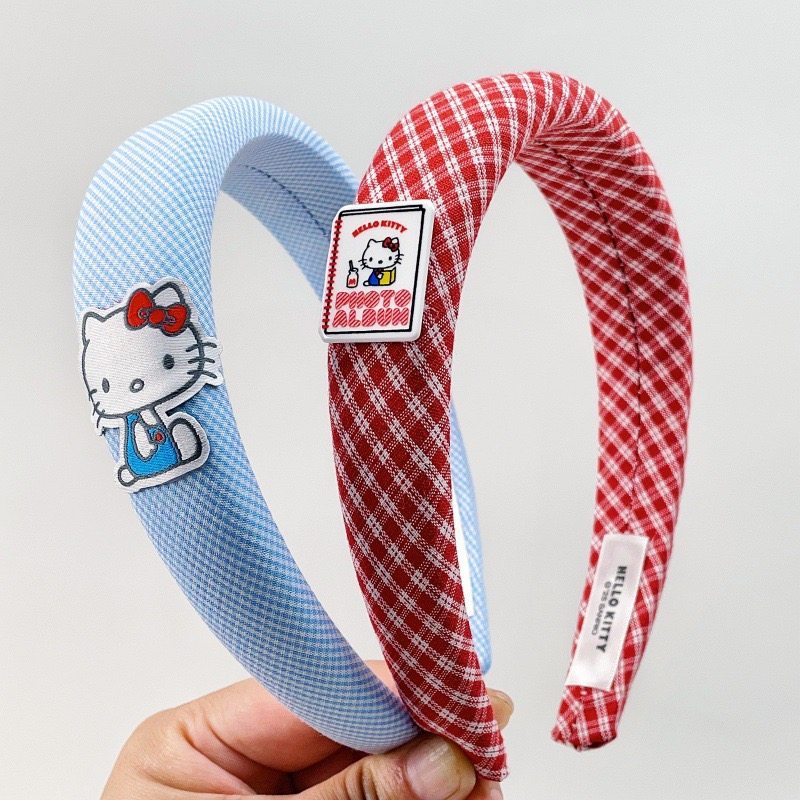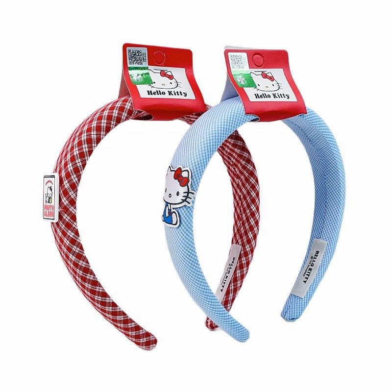 正版Hello Kitty发箍凯蒂猫可爱红蓝格纹高颅顶头箍海绵发卡13500