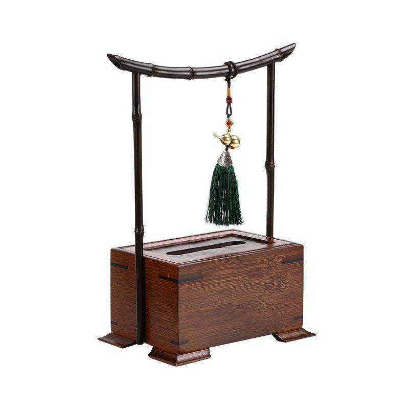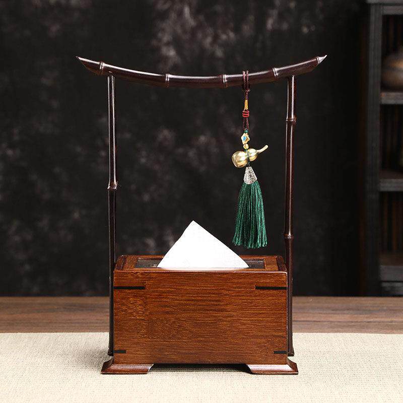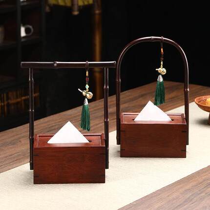 竹制提拿纸巾盒卫生纸盒收纳盒新中式茶室摆件客厅饭厅实木餐巾纸