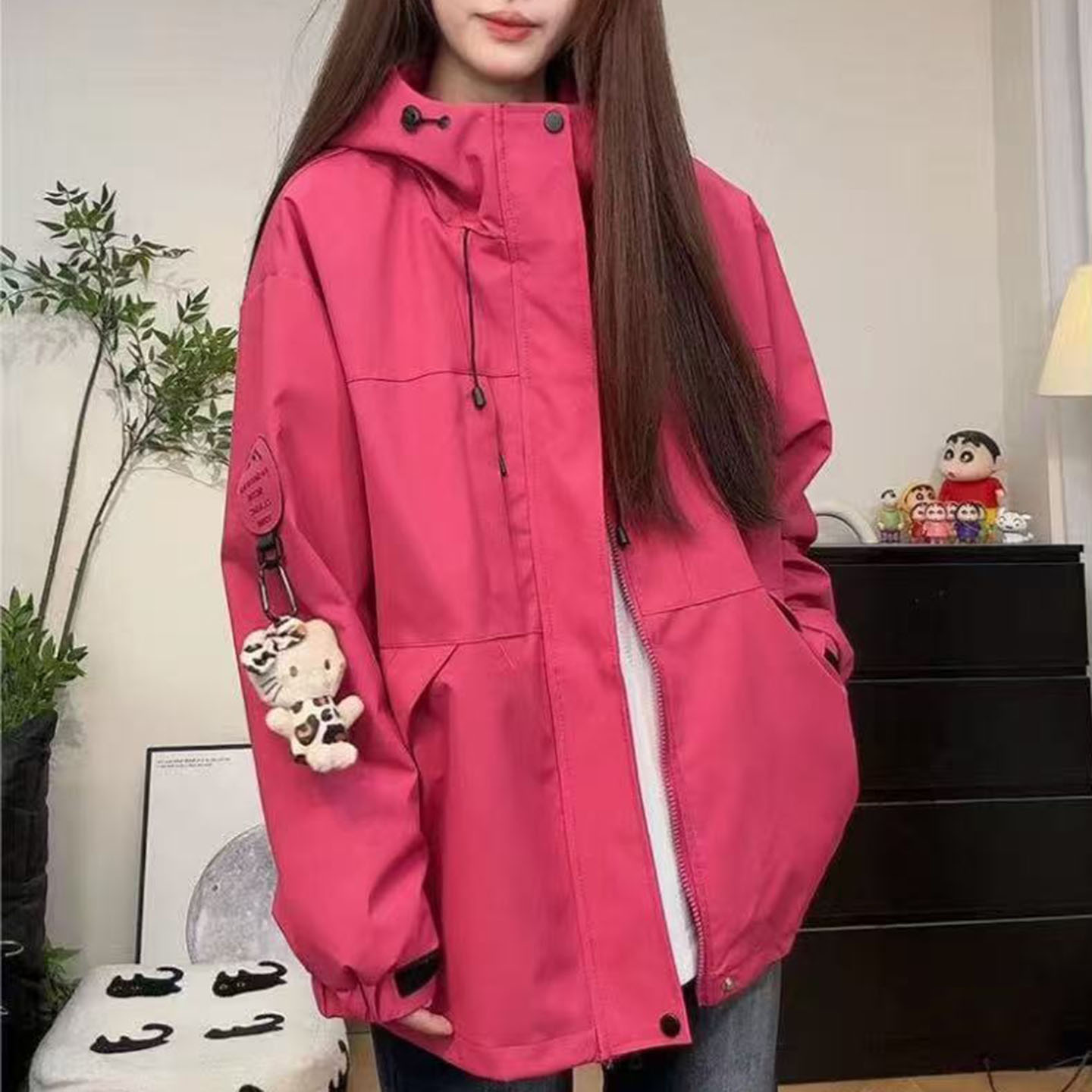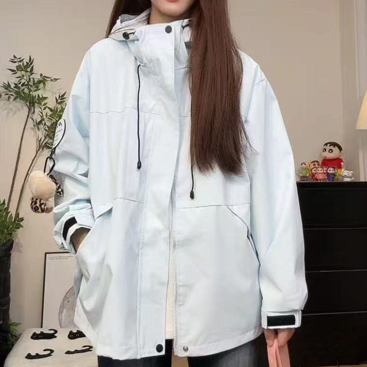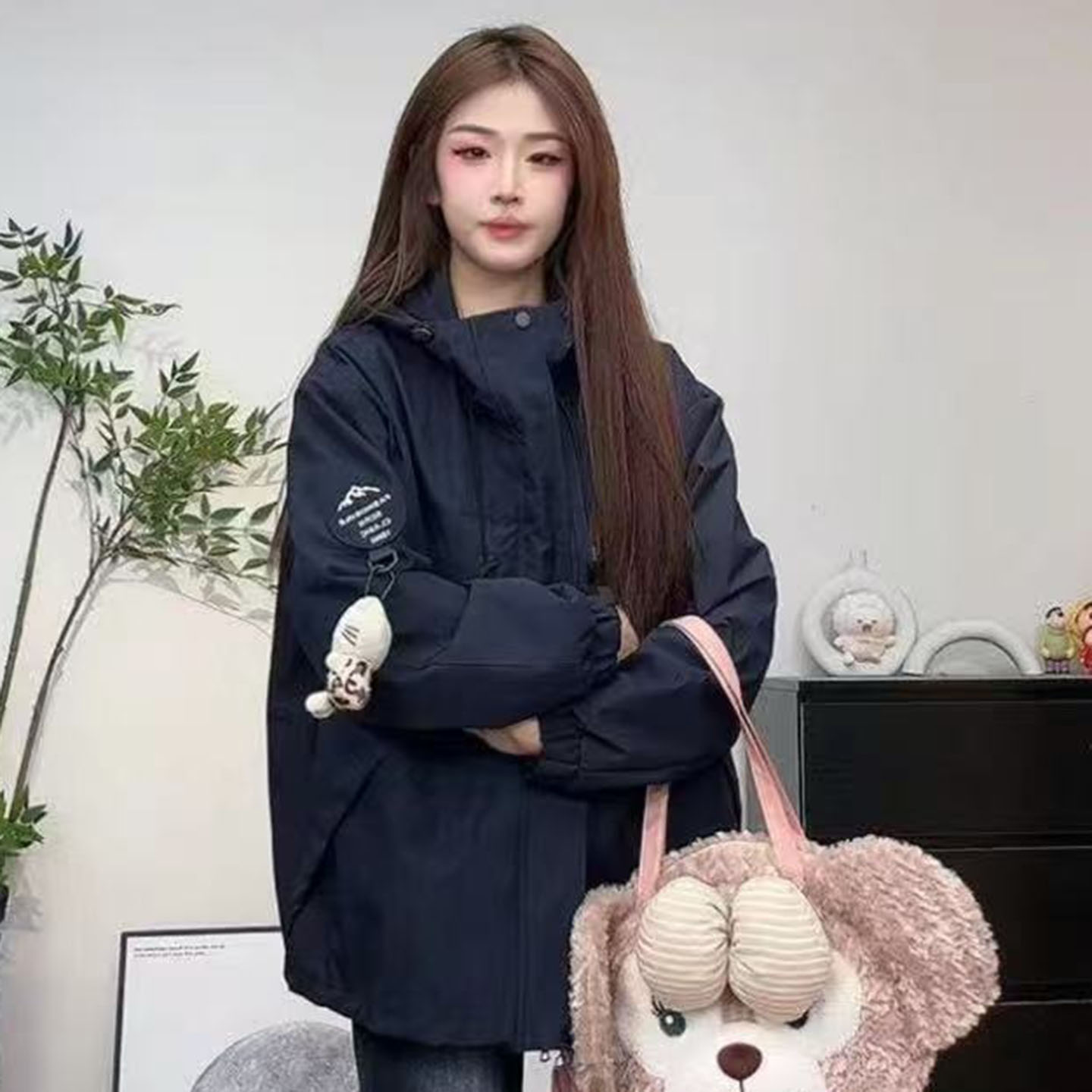 休闲百搭冲锋衣2025年新款韩版宽松棒球服洋气连帽工装夹克外套女