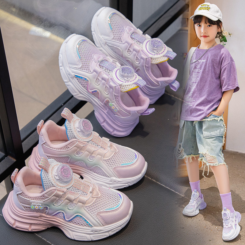 女童运动鞋2024夏季新款跑步鞋网面透气儿童鞋旋转扣女孩公主网鞋
