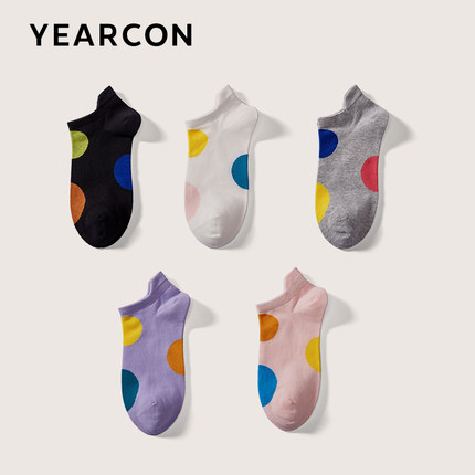 YEARCON/意尔康女袜女士浅口休闲夏季薄款透气船袜5双装女款袜子