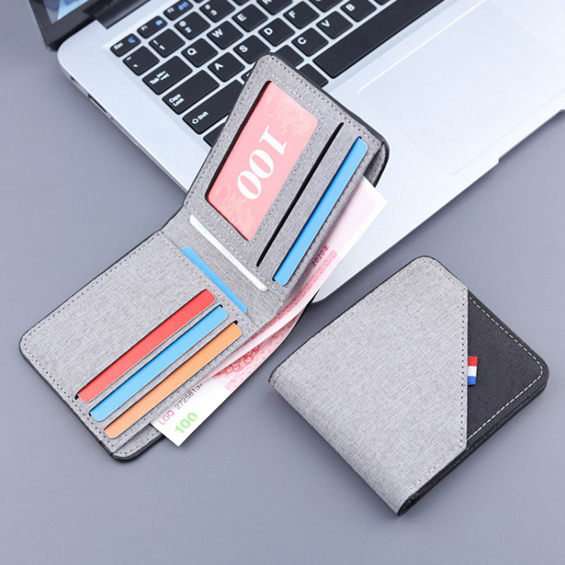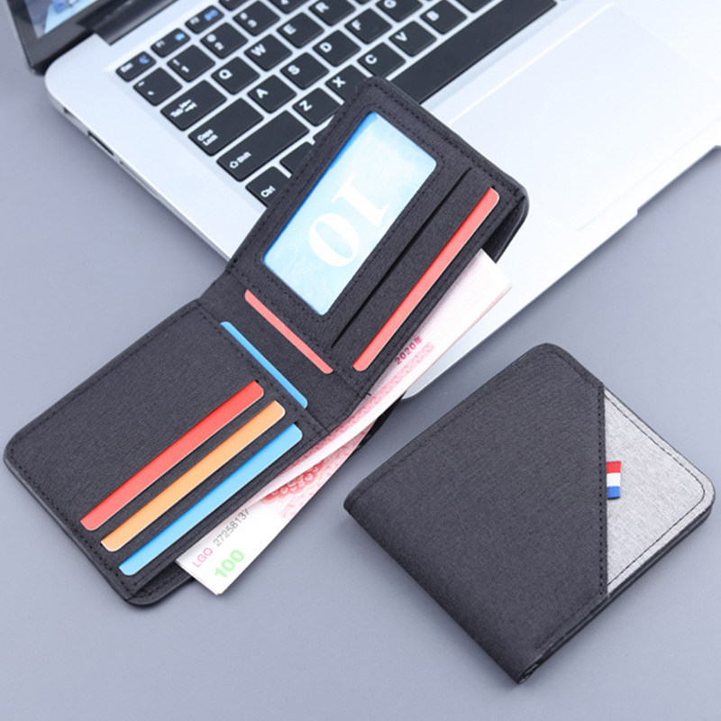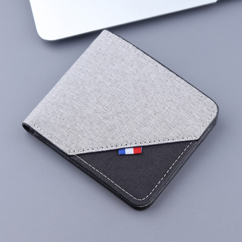 帆布撞色钱包男短款2025新款潮牌青年学生个性简约超薄折叠皮卡夹