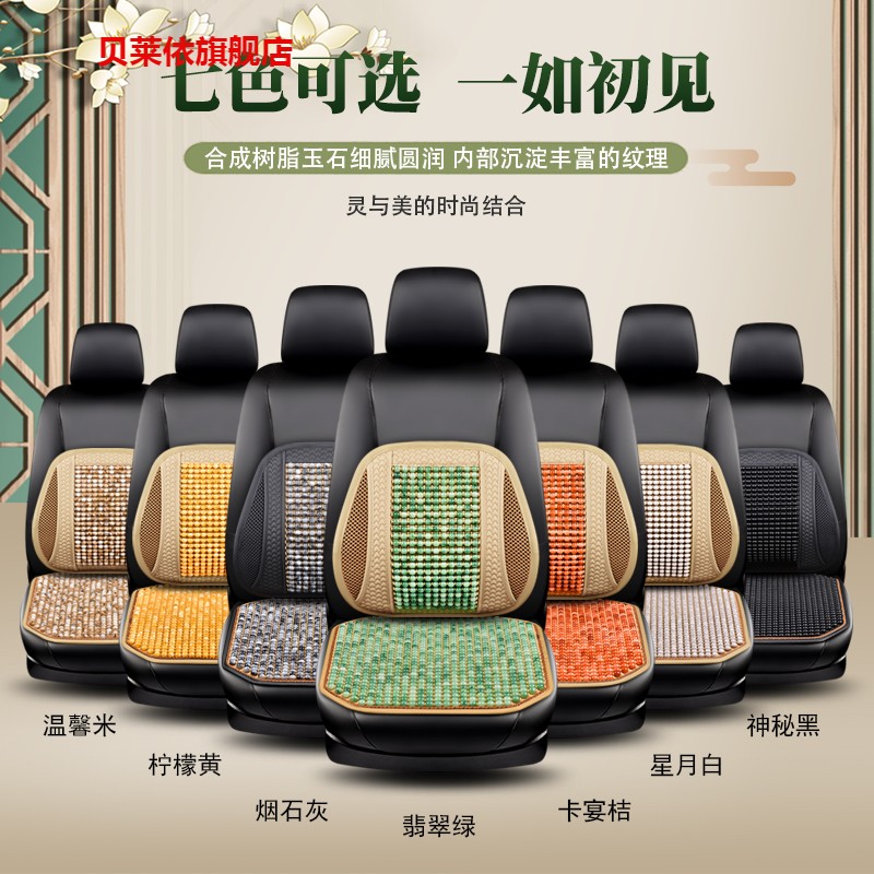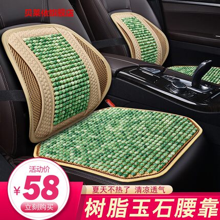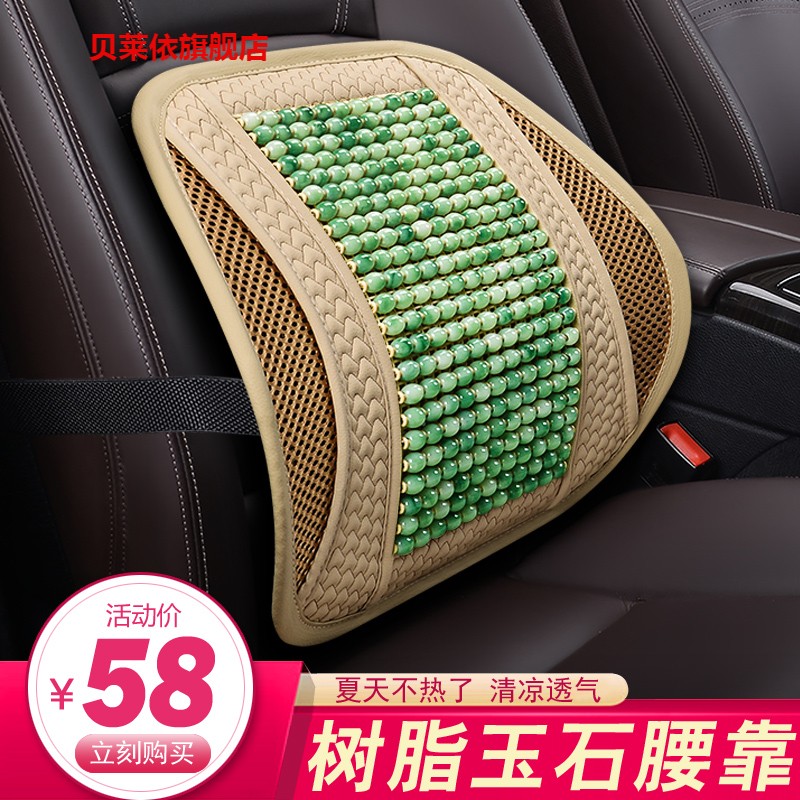 玉石汽车腰靠夏季珠子靠背四季通用可爱靠垫调节腰枕护腰坐垫套装