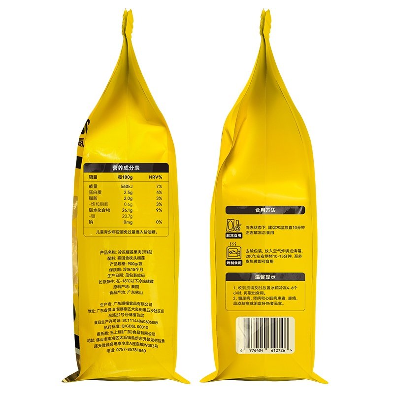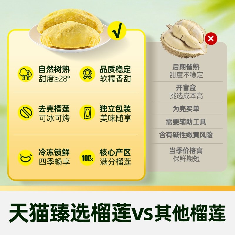【臻选】王上榴泰国进口金枕榴莲肉冷冻带核自然树熟果肉