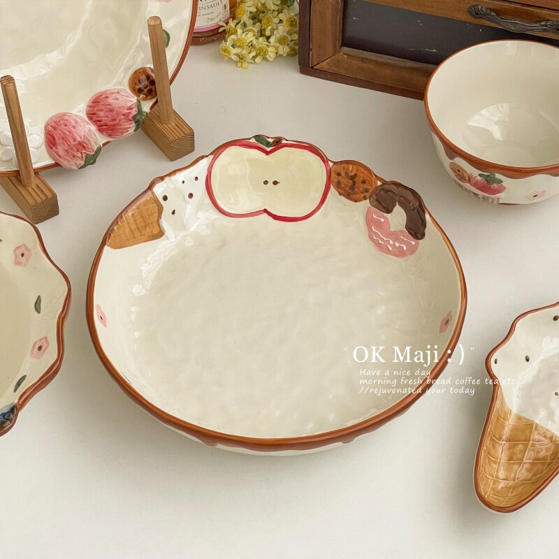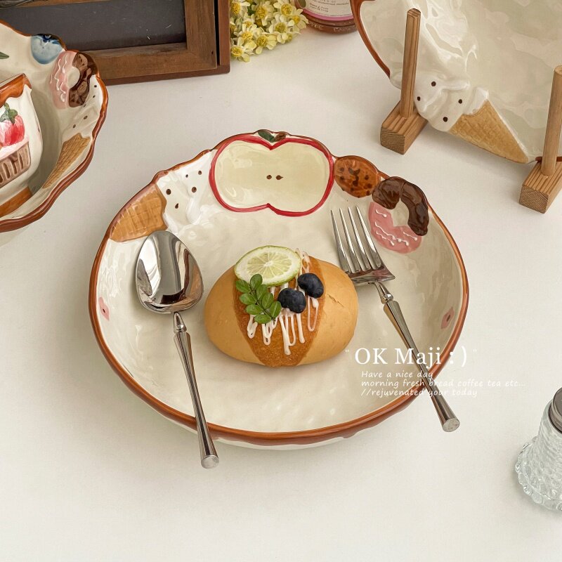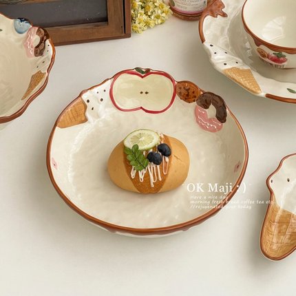 下午茶点心盘精致果盘造型好看的盘子可爱卡通陶瓷餐盘家用早餐盘