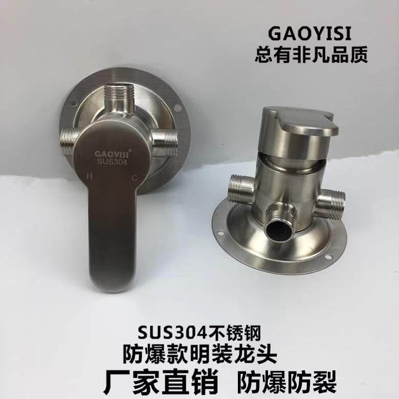 304不锈钢明装淋浴龙头混水阀冷热明管热水器开关洗澡花洒套装
