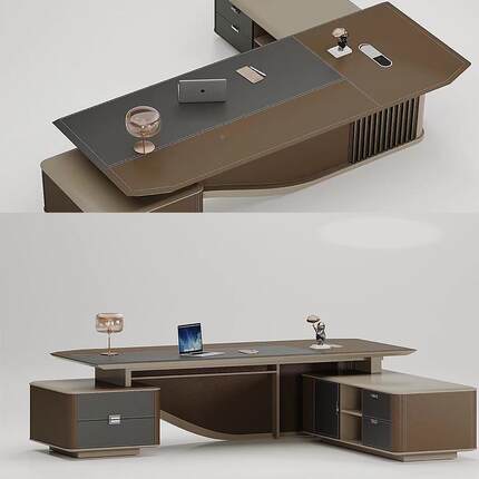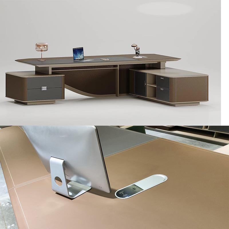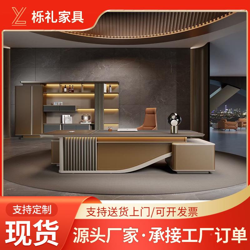 意式轻理奢老板桌现代简约时裁办公桌尚大班台经桌椅总奢华现代桌