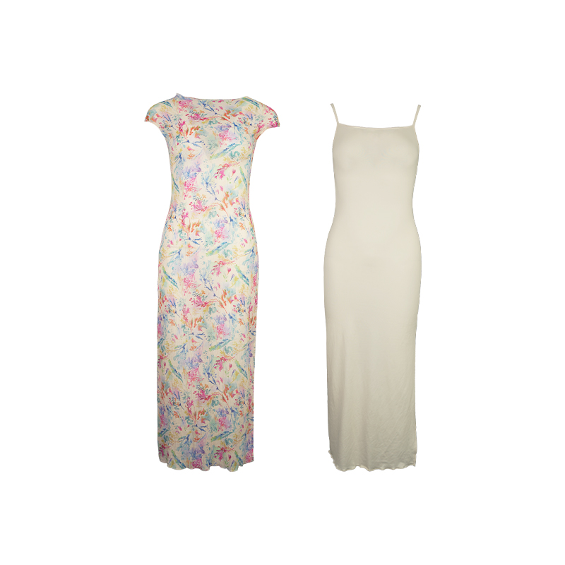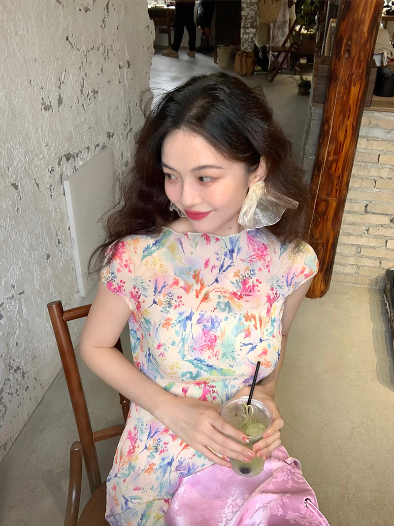 酒午自制【似烟火】压皱弹力肌理印花油画连衣裙内搭吊带裙两件套