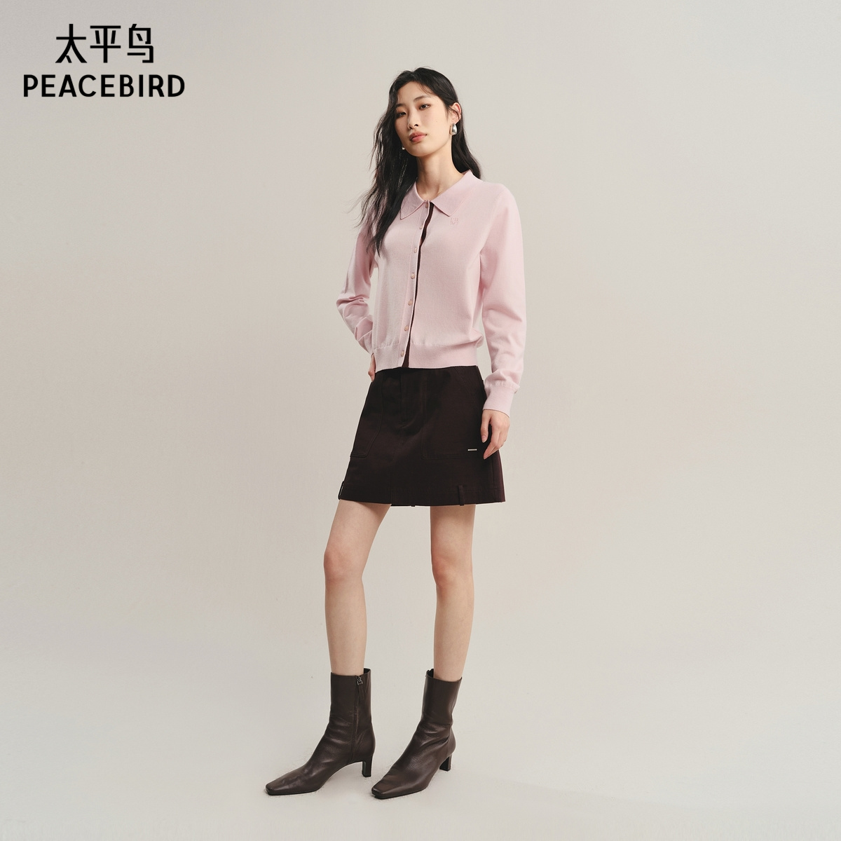 【商场同款】太平鸟 25秋季新款温柔撞色翻领开衫针织衫A1EDF3501