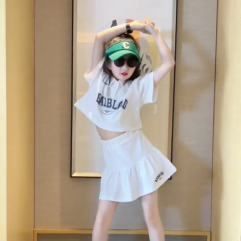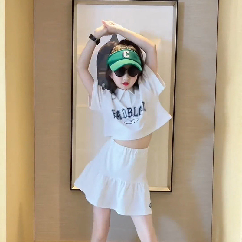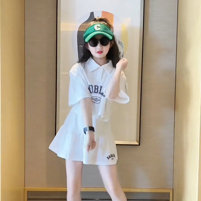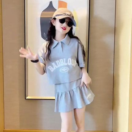 女童夏季套装裙2023新款休闲儿童POLO领t短袖女短裙T恤两件套裙子