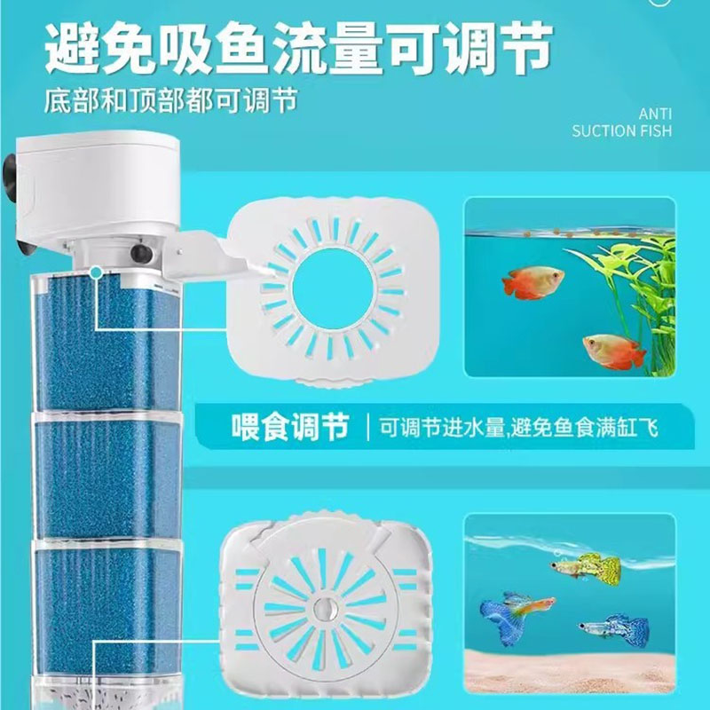 京业鱼缸过滤器内置免换水三合一净水循环小型潜水泵增氧泵鱼马桶