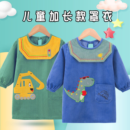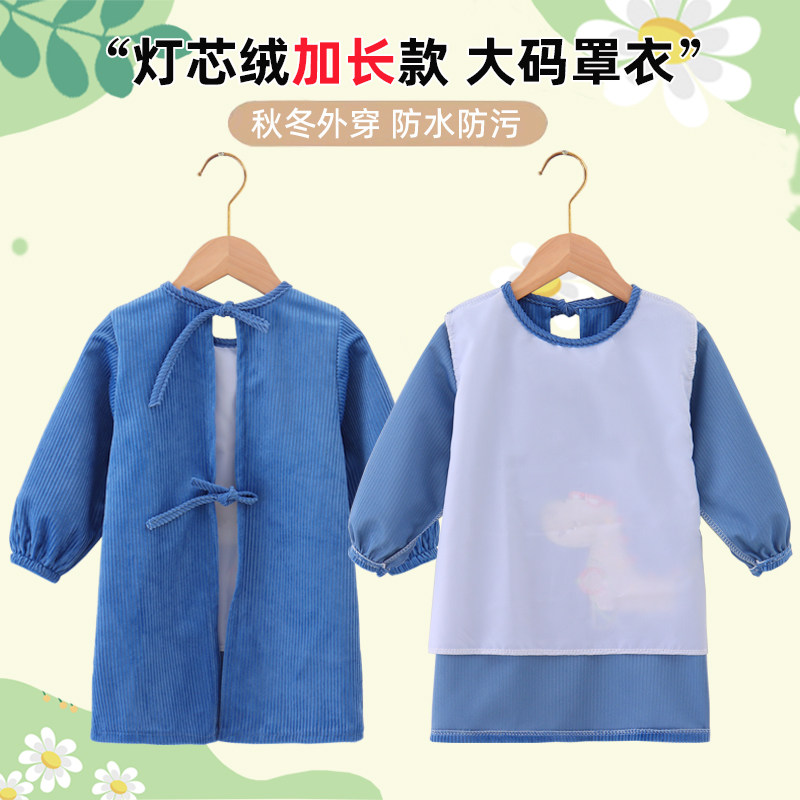 儿童卡通防水罩衣大童长款防脏反穿衣套厚衣服护衣宝宝冬天吃饭衣