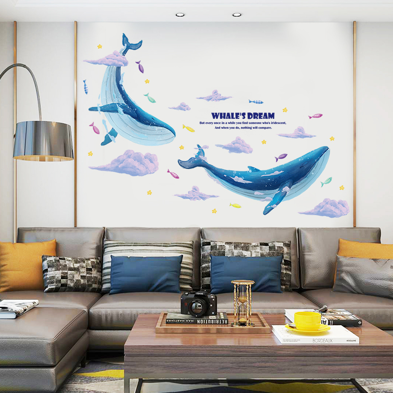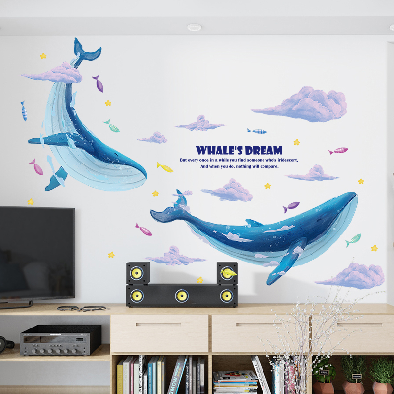 速发创意个性鲸鱼墙贴画客厅卧室沙发背景墙壁墙面装饰海报纸自粘
