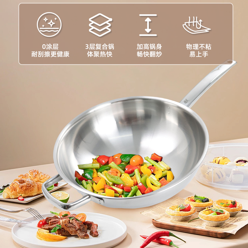 德国WMF福腾宝中华炽能系列炒锅不锈钢炒菜锅厨房煎炒锅不粘锅