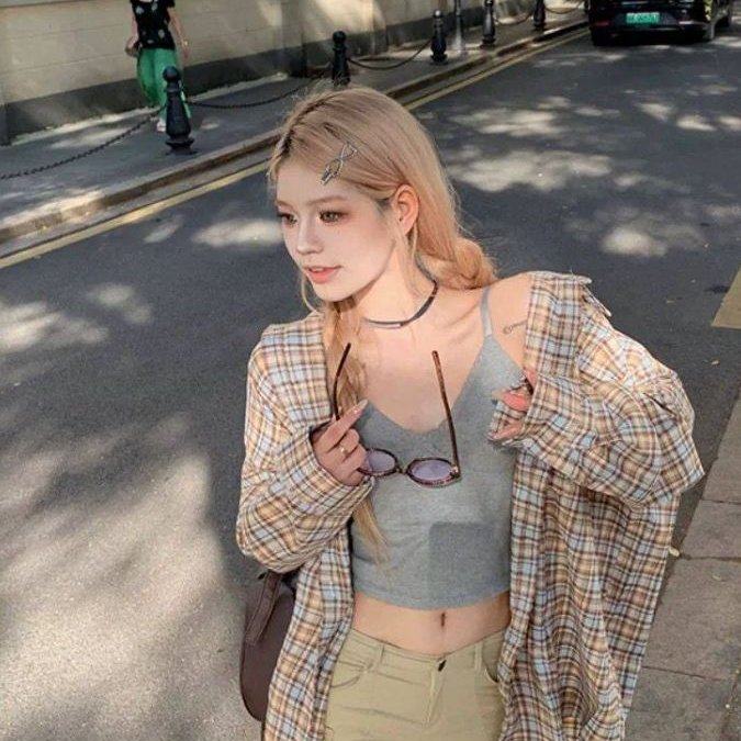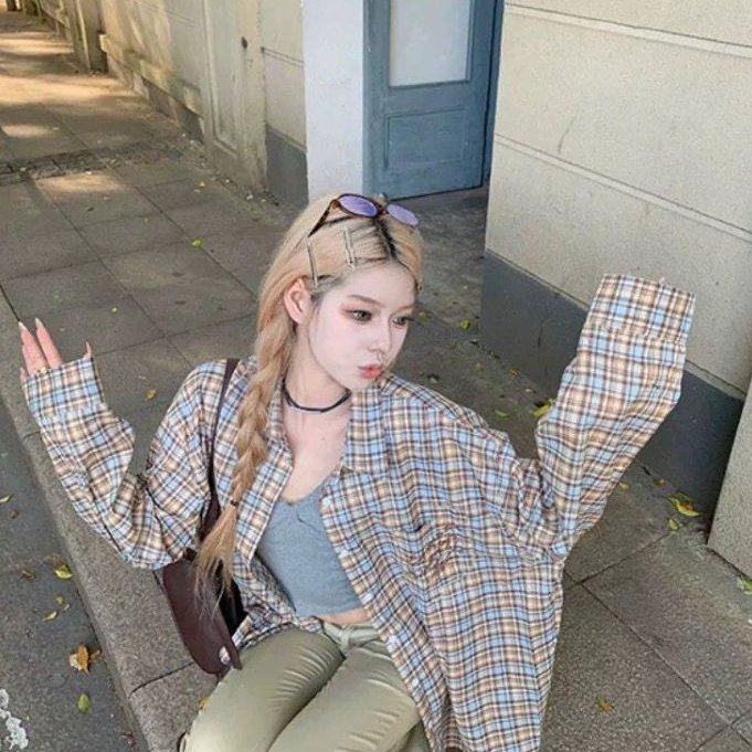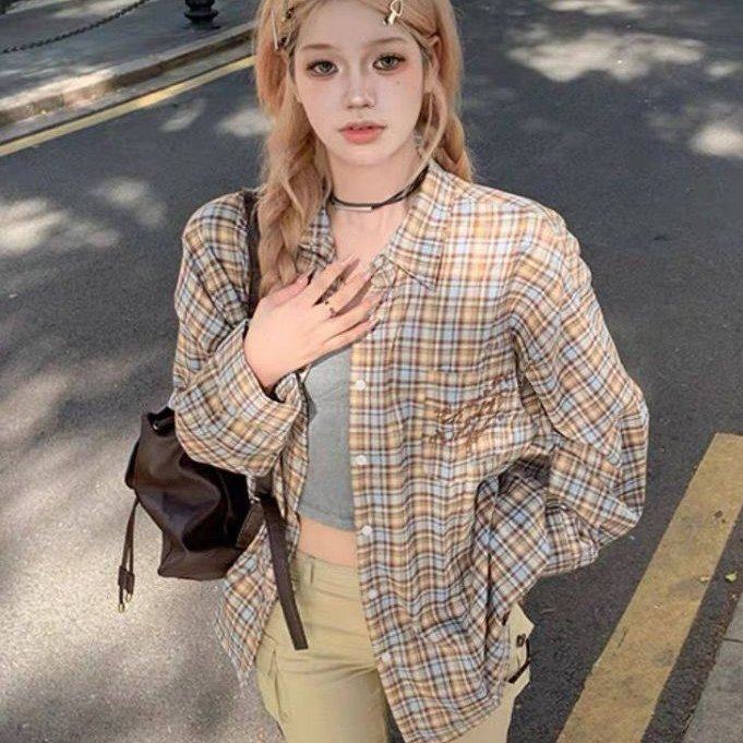韩系复古慵懒风格子衬衫女春秋新款宽松百搭气质休闲防晒上衣外套