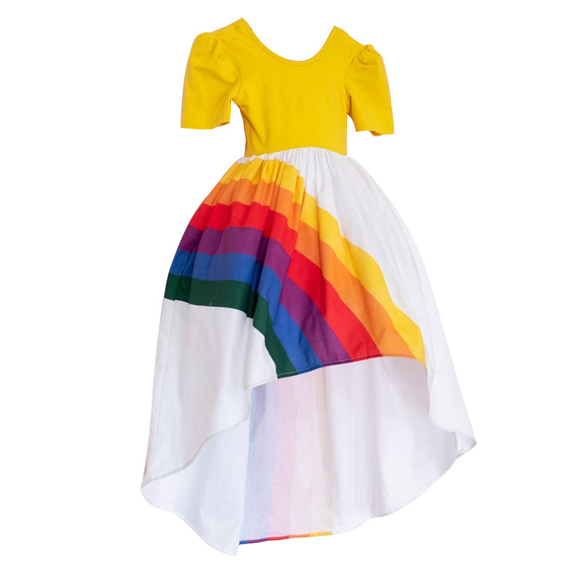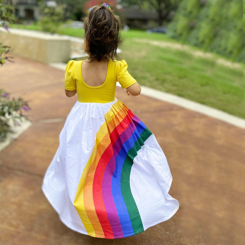 亲子装母女装洋气连衣裙2021年新款彩虹度假装女童纯棉弹力公主裙