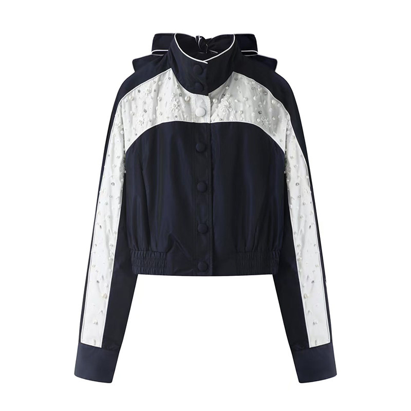 2025秋季新品小香风蝴蝶结钉珠短棒球服外套腰封刺绣休闲直筒裤女
