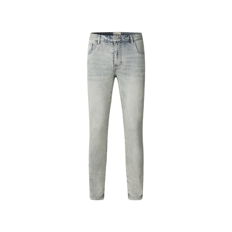 HIM汉崇 水洗做旧小脚牛仔裤男 后腰绒感皮牌修身休闲裤 2025夏季