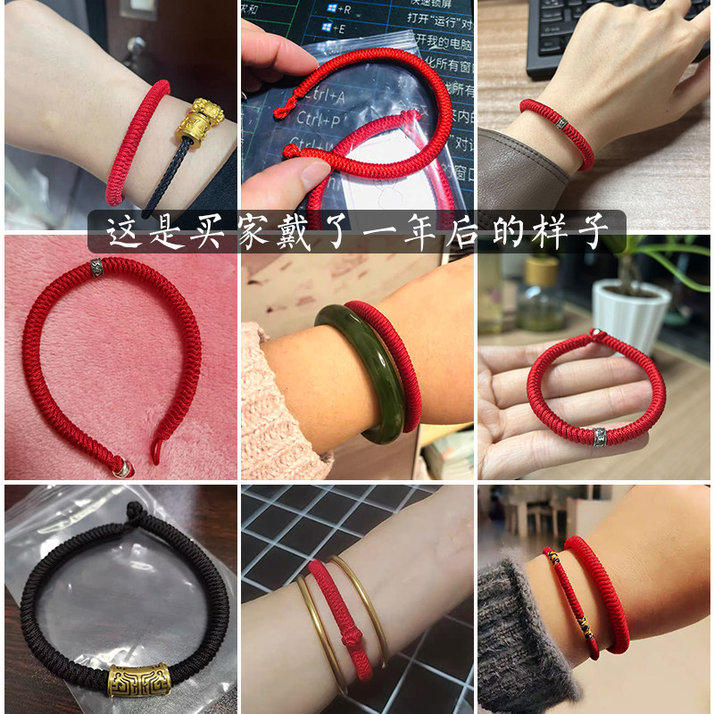 男士本命年红手绳银饰好运红绳手链编织叠戴素圈编织绳红手链手绳