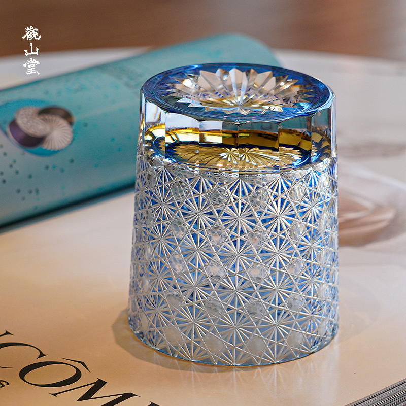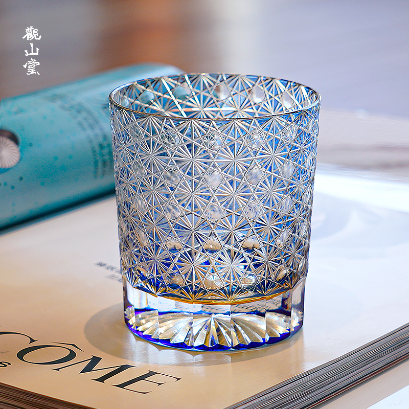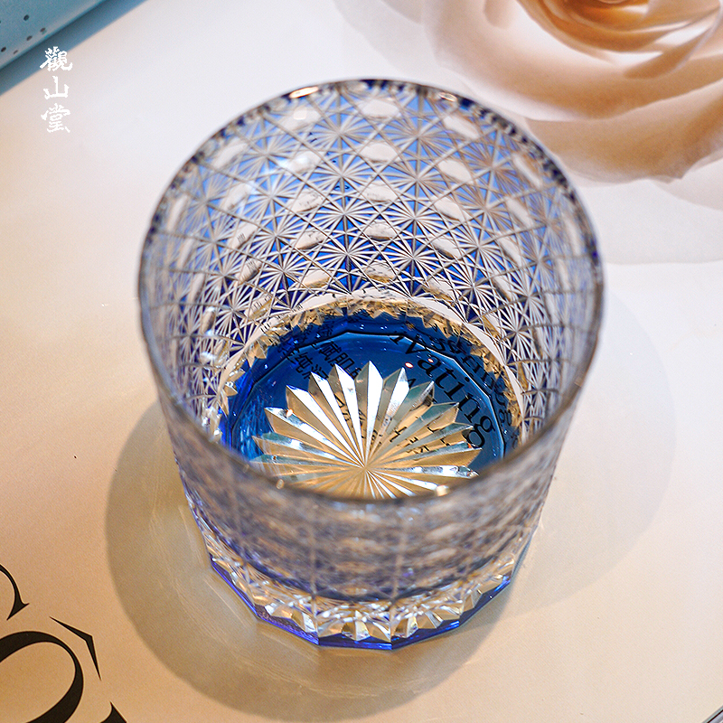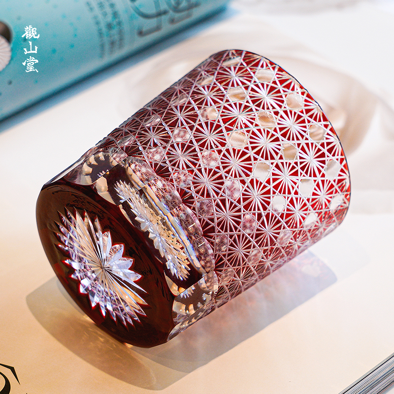 七宝切子手工玻璃杯 江户切子菊纹水晶玻璃杯 创意威士忌玻璃酒杯