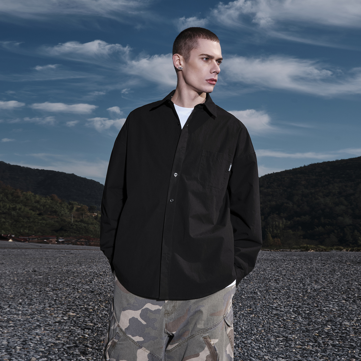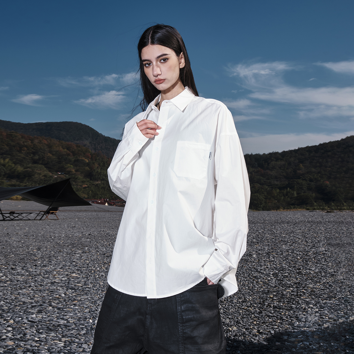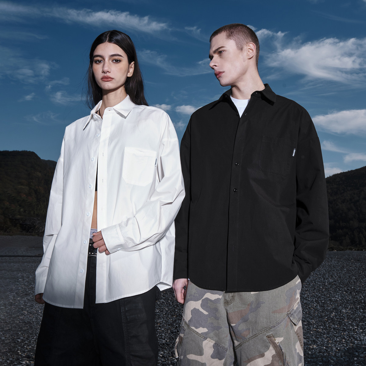 FORNINES基础百搭纯棉蓝色长袖衬衫男女情侣衣服潮牌上衣春秋外套