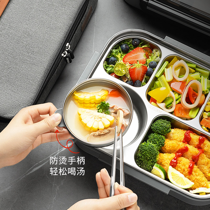 【自营】泰福高不锈钢饭盒上班族分格餐盒便当盒1人便携餐盘分隔