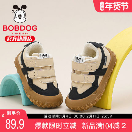 巴布豆童鞋官方旗舰店儿童宝宝鞋加绒二棉鞋冬季男宝男童学步鞋女