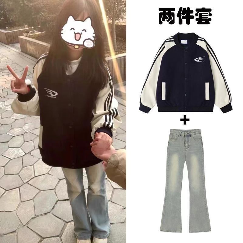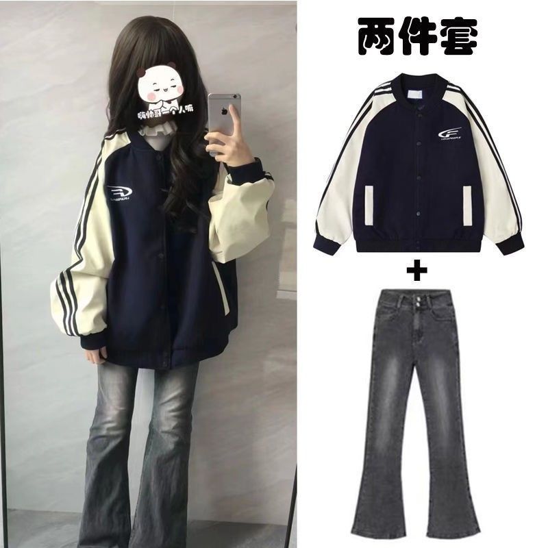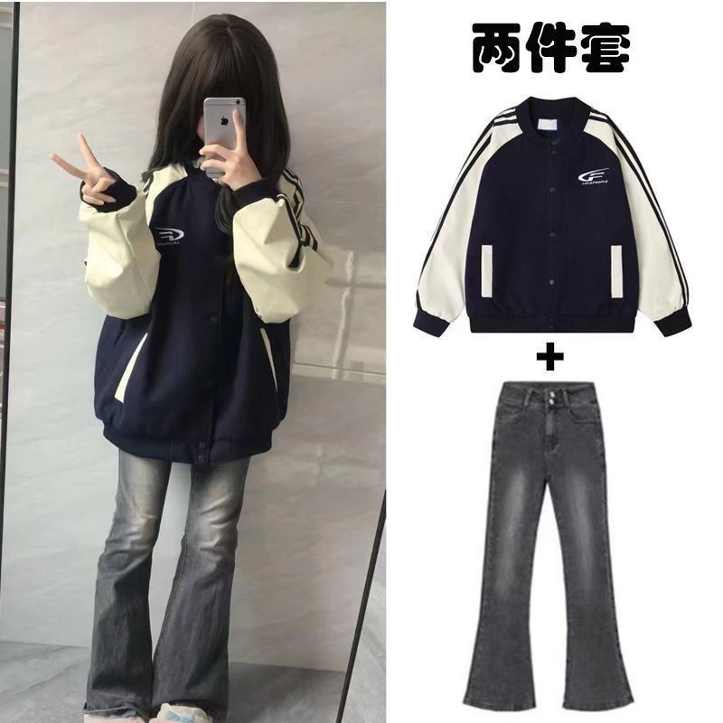 少女套装12-18岁初中学生13春秋韩版甜酷慵懒风外套牛仔裤两件套1