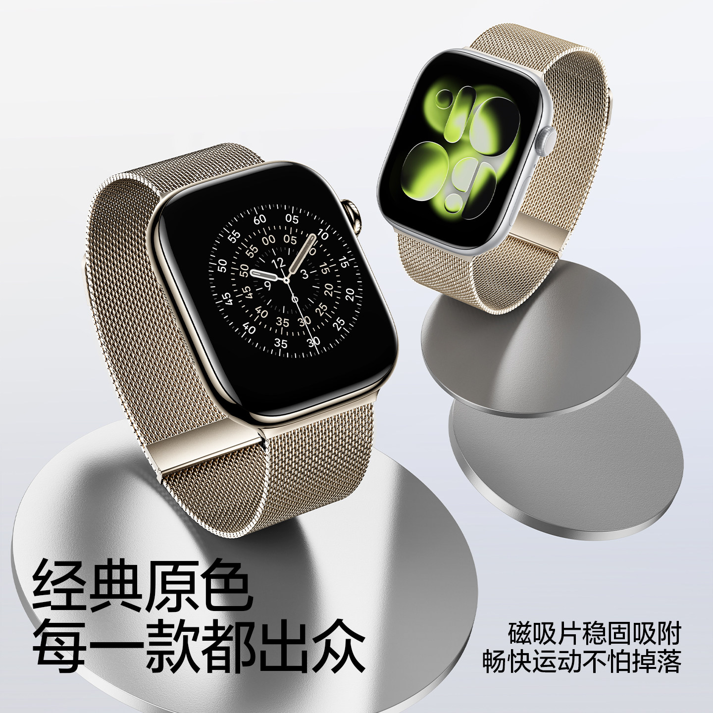 闪魔适用苹果s11磁吸手表带S10米兰尼斯表带iwatch9表链applewatch新款s8/7/6/5金属回环式腕带ultra3男女夏
