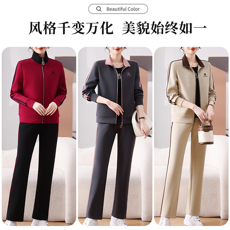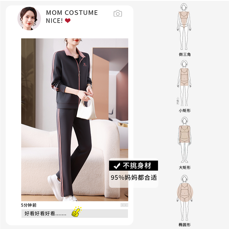 50多岁妈妈春装新款时尚运动套装中老年女春秋外套洋气休闲三件套