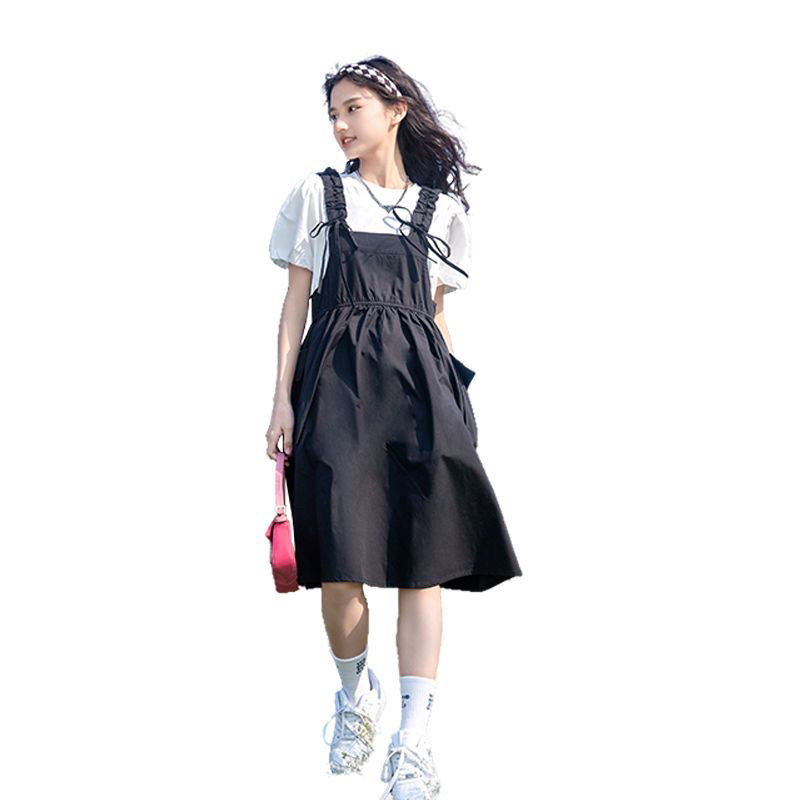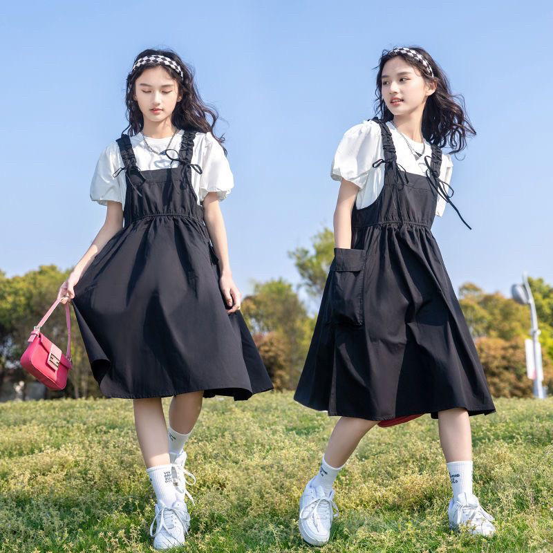 女童夏装套装韩版2024新款13女孩洋气裙子夏季休闲中大童背带裙