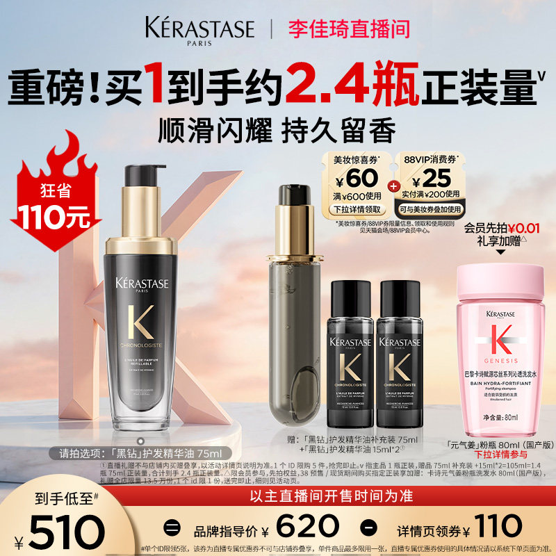 【李佳琦直播间尾款日】^卡诗黑钻护发精油头发亮泽*