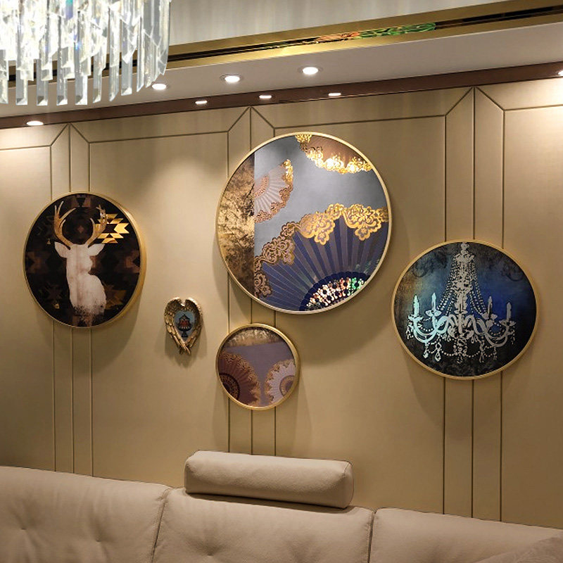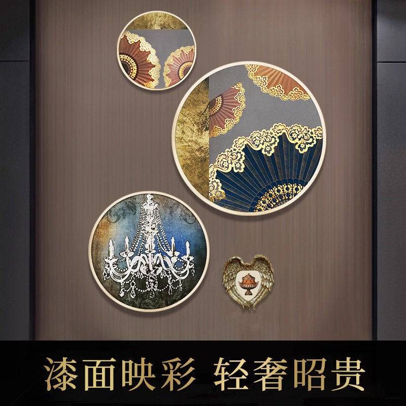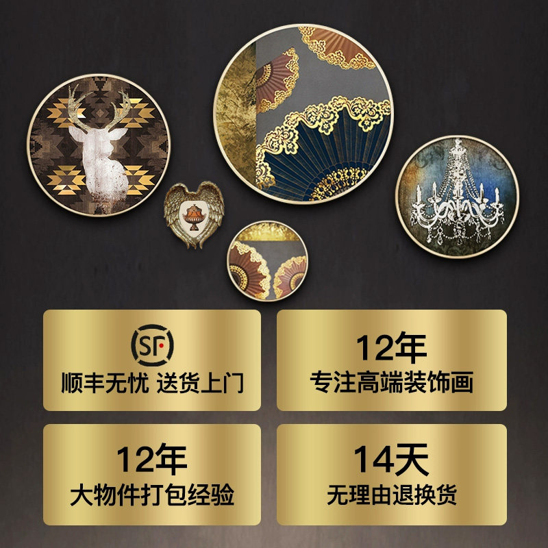 美式轻奢沙发背景墙画欧式简欧高档餐厅壁画圆形挂画客厅装饰画