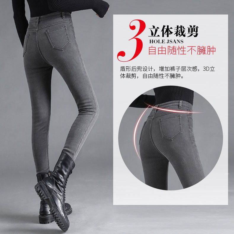 黑色加绒加厚牛仔裤女高腰2025冬装百搭显瘦紧身弹力小脚铅笔