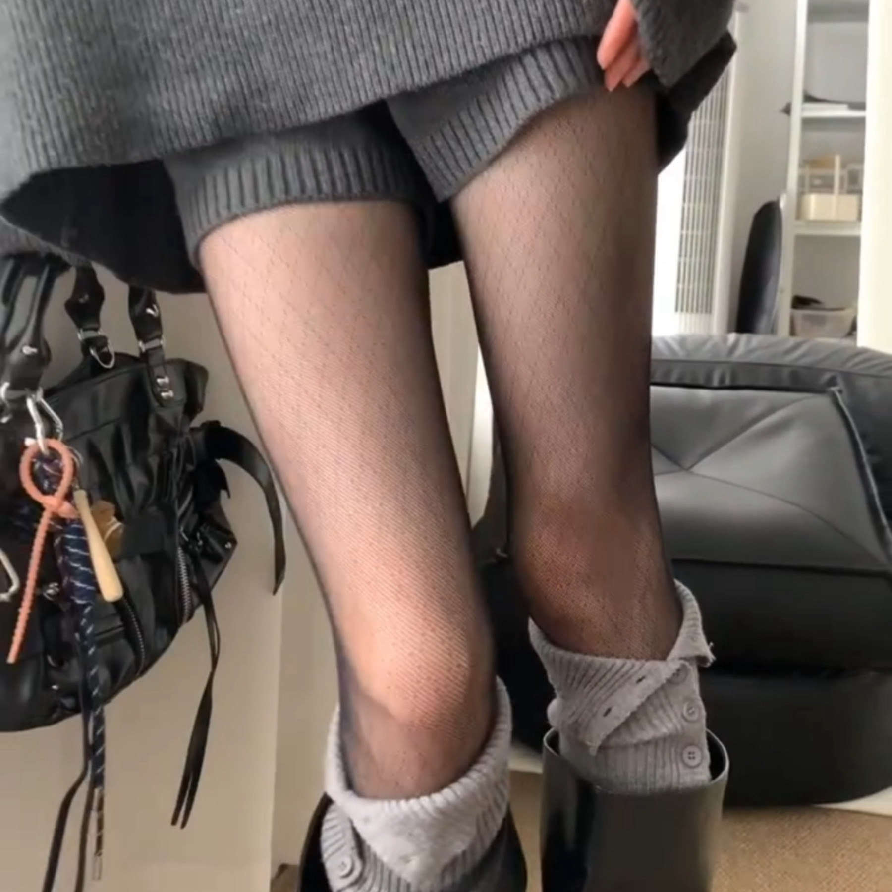 黑色菱格丝袜女秋冬季超薄0d高透打底裤防勾丝灰丝配光腿神器