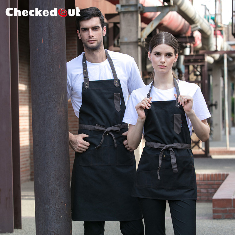 厨房围裙韩版时尚咖啡店男女围裙定制可爱围腰成人工作服挂脖围裙