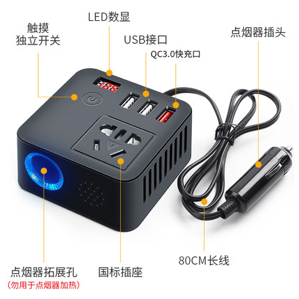 车载逆变器充电12V24V转220V多功能通用插座货车用电源转换器